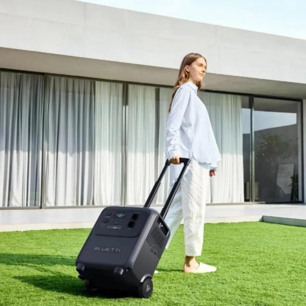 Продуманий дизайн із вбудованими колесами та телескопічною ручкою робить переміщення максимально зручним, навіть попри велику ємність акумулятора. Це повноцінна мобільна електростанція, яку можна використовувати вдома, на дачі, у кемпінгу або на будівництві.