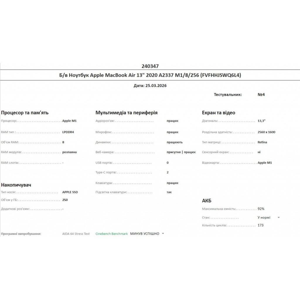 Цей MacBook Air — ідеальний старт у світ Apple Silicon. Він дарує той самий досвід використання, за який цінують Mac: бездоганна збірка, інтуїтивно зрозуміла macOS, довговічність та відмінна ліквідність при перепродажу.